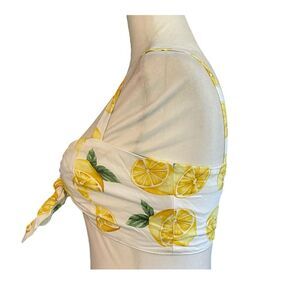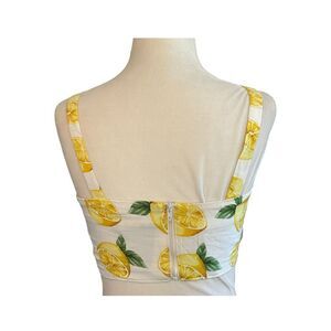 Forever 21 Lemon Print Bralette Crop Top White Yellow Woven Knit Sleeveless S