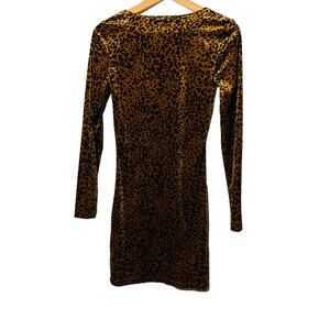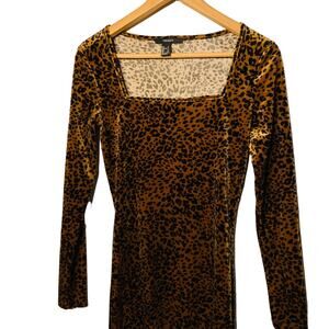 Forever 21 Leopard Print Long Sleeve Square Neck Velvet Mini Dress