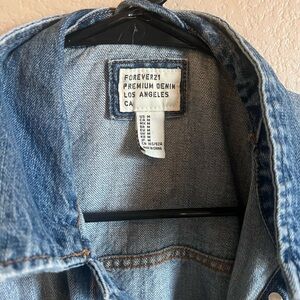 Chic light blue denim jacket. Features classic stitching and collar. Ideal for layering.