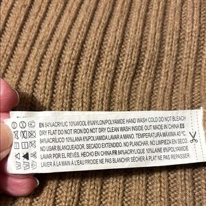This long cardigan from Forever 21 features a warm light brown color and a prominent ribbed knit pattern that runs vertically throughout the garment. With full-length sleeves, front pockets, and an open front design, it is perfect for layering and adds a touch of elegance to any outfit.