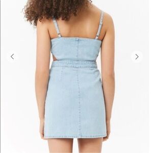 ADORABLE Forever 21 Light Denim Cut Out Mini Dress XS with adjustable straps. Tiny natural white spots on the denim. Review photos