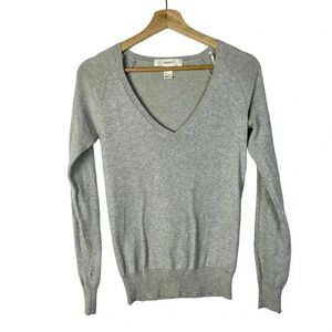 Forever 21 Light Gray V-Neck Pullover Fitted Sweater S