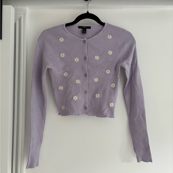 Forever 21 Light Lavender Ribbed Button Cardigan