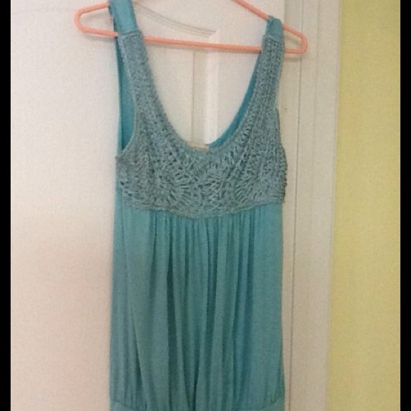 Forever 21 Light Teal Tank with Crochet Detail