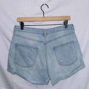 Forever 21 Light Wash Denim High Rise Button Fly Distressed Jean Shorts