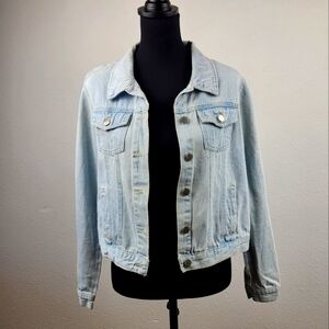 Forever 21 Light Wash Denim Jacket Cotton Classic 90's Vintage Style Size Large