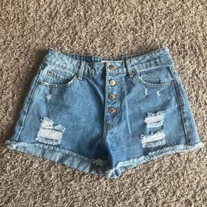 Forever 21 Light Wash Distressed Button Fly Jean Short Size 27