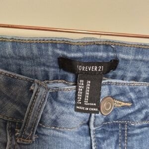 Forever 21 Light Wash High Waist Distressed Jeans with Frayed Hems Size 26
