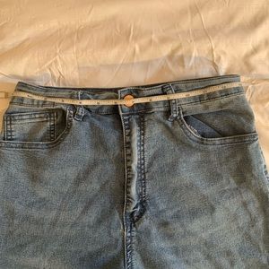 Plain medium washed denim jeans. Very stretchy material and a nice color. Great condition.