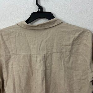 Forever 21 Linen Blend Button Down Shirt Size S in sand, beige. Resort Collection Beach Lightweight