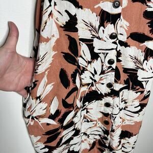 Forever 21 Linen Blend Midi Dress Womens Medium Pink Brown Floral Button Up