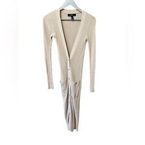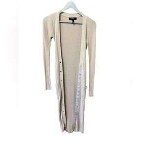 🟣Forever 21 Long Beige Cardigan Ribbed Snap Sweater Small