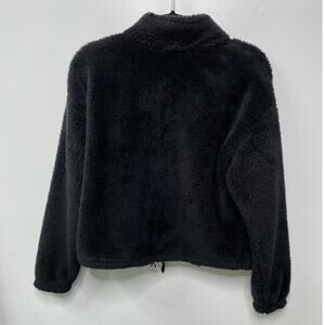Forever 21 Long Sleeve Full Zip Mock Neck Fuzzy Sherpa Fleece Jacket Black Med