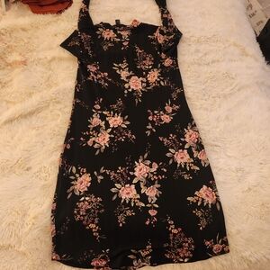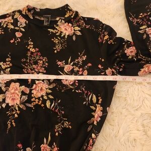 Forever 21 Long Sleeve Mini Black Floral Stretchy Dress Size Large