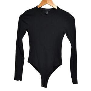 Forever 21 Long Sleeve Ribbed Black Bodysuit Size Medium