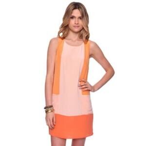 Forever 21 Love 21 100% Silk Coral Orange Colorblock Shift Dress