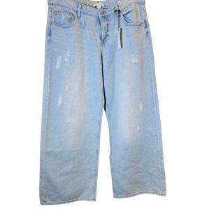 Forever 21 Low Rise Baggy Light Blue Distressed Wide-Leg Jeans