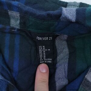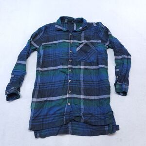 Forever 21 Madras Flannel Casual Button Up Shirt Womens Size M Blue Green