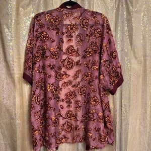 Forever 21 Maroon Golden Floral Velvet Burnout Open Front Kimono Small