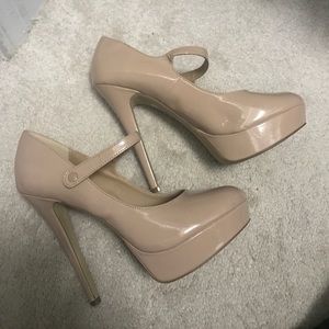 Nude platform heel with strap. Small imperfections here or there but only worn once.