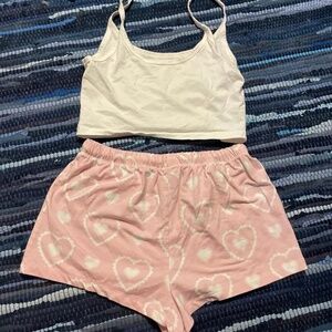Forever 21 Matching Heart Cropped Tank & Shorts Pajama Set “Leave Me Alone”