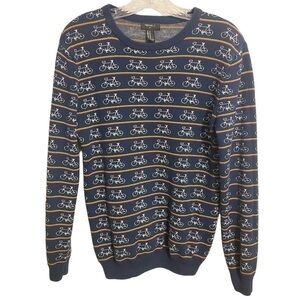 Forever 21 Men | Navy Bicycle Print & Striped Crewneck Sweater (Size Medium)