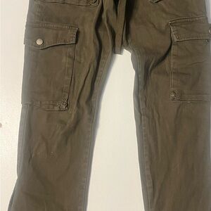 Versatile khaki cargo pants with ample pocket space. Ideal for casual outings.