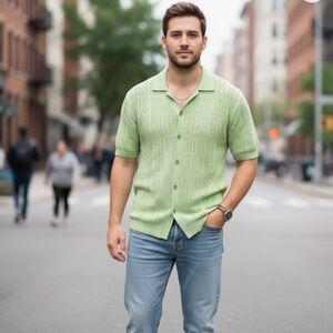 Forever 21 Men’s Knit Green Textured Shirt Size L Large