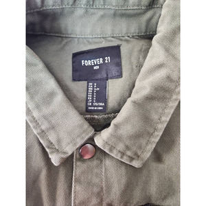 Forever 21 Mens Shirt Jacket Green Denim Snap Pockets Patches Streetwear S