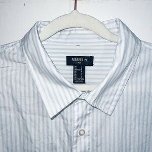 Forever 21 Mens Striped Button-Down Shirt, Light Blue/White | L