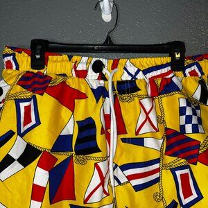 Forever 21 Men’s XL Swim Trunks Yellow Nautical Flag Print Board Shorts