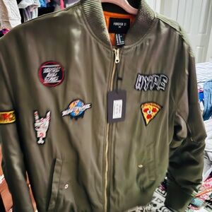 Forever 21 Mens Youth Revival Bomber Jacket With Patches Size Xs