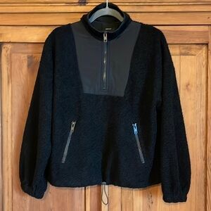 Forever 21 Mid-weight faux shearling sheepskin Black pullover Quarter Zi…
