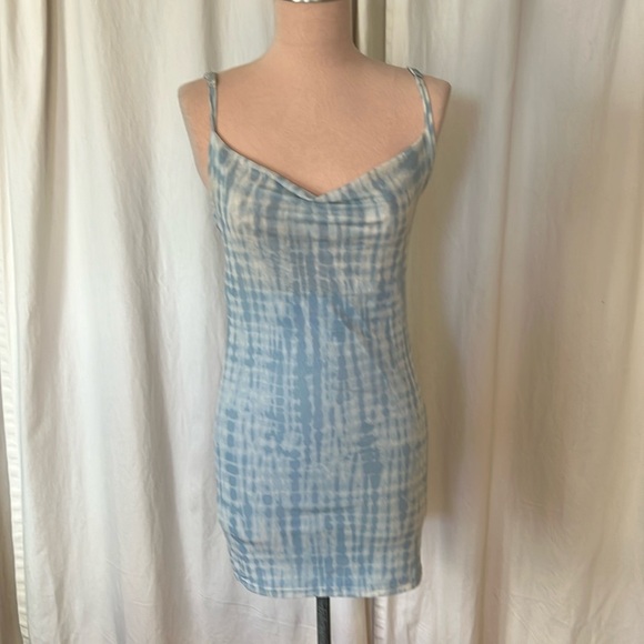 Forever 21 Mini Dress Blue White Lined Stretch Tye Dye Pattern