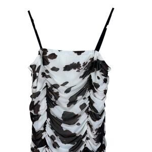 Forever 21 Mini Dress Size S White Brown Cow Print Mesh Ruched Bodycon Festival