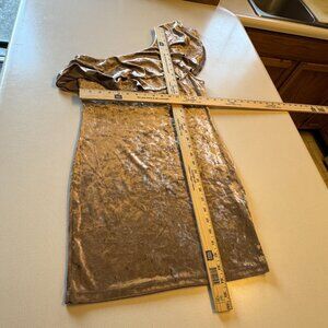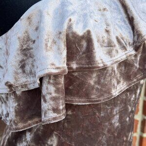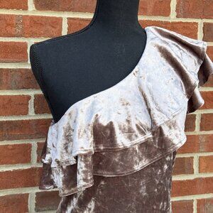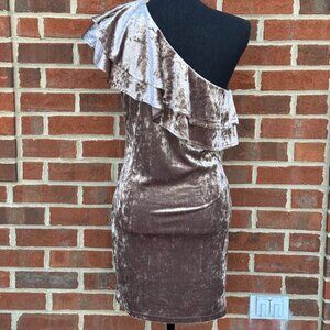 Forever 21 Mini Party Dress Large Brown Crushed Velvet Ruffled One Shoulder