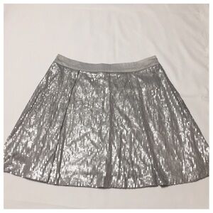 Forever 21 Skater Mini Skirt. Size Medium. Silver Color. BNWT. Sequins. Lined. Zipper & Hook on one side. Great for any ocassions or save it for the holidays.