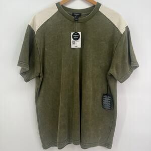 Forever 21 Minimal Athletic Top Tee Shirt Olive & Cream Size Large