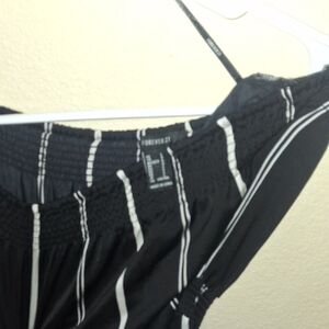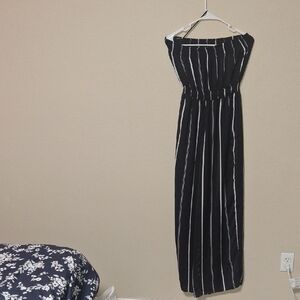 Elegant strapless jumpsuit with vertical stripes. Perfect for casual outings or evening wear.