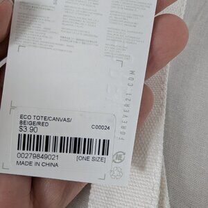 Forever 21 More Love Canvas Tote Bag Beige Red Eco Tote NEW NWT