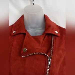 Forever 21 Moto Bikercore,Casual,Preppy,Punk Red Orange Rust Suede Jacket(#1,536