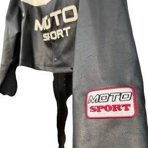 Forever 21+ Moto Sport Racing Jacket 1X Faux Leather Cropped