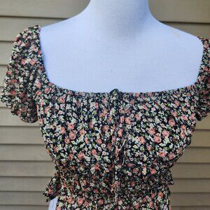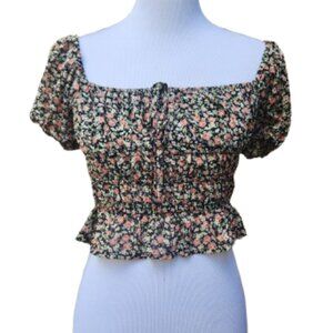 Forever 21 Multicolor Square Neck Crop Top Ditsy Floral Print Blouse