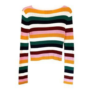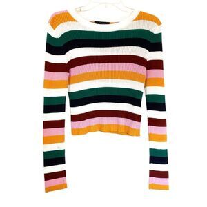 Forever 21 Multicolor Stripe Knit Sweater Medium Retro Long Sleeve Crew Neck