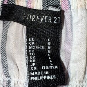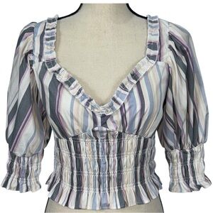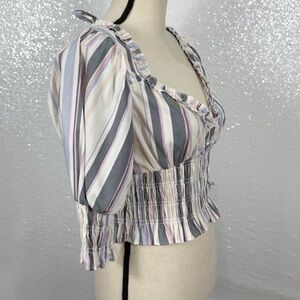 Forever 21 Multicolor Striped Smocked Puff-Sleeve Size Large