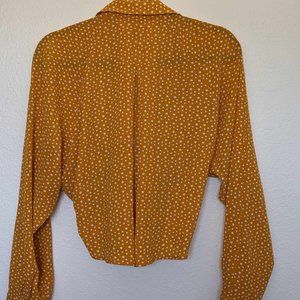 Forever 21 Mustard yellow/white polka dot tie front blouse. Size L.