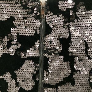 Forever 21 NWOT black velvet dress with black sequin design. Round neck, short sleeve, silver tone exposed back zipper and full lining.