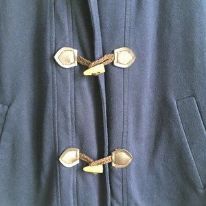 Super Cute & heavy well made sweatshirt jacket with full zipper & toggles. Side pockets & hood, navy color.
