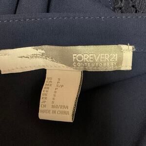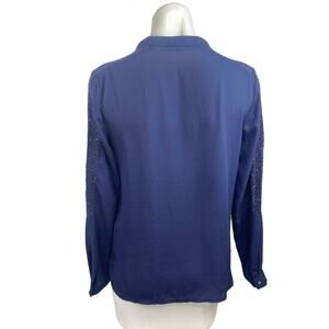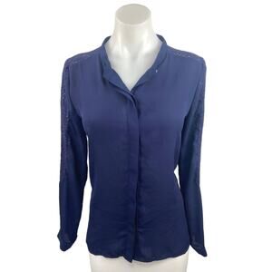 Forever 21 Navy Blue Lace Side Long Sleeve Button Down Blouse Top Shiryt Size S