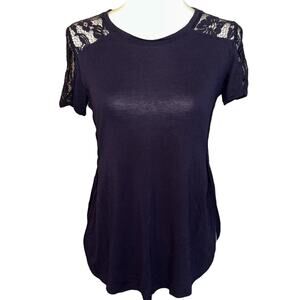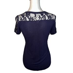 Forever 21 Navy Blue Short Sleeve top Size XS Lace Back and Shoulders